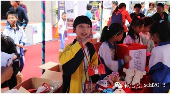 图片说明:爱心义卖现场:“小老板人”在吆喝叫卖