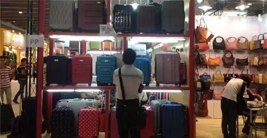 广交会箱包展区上一客商在观望