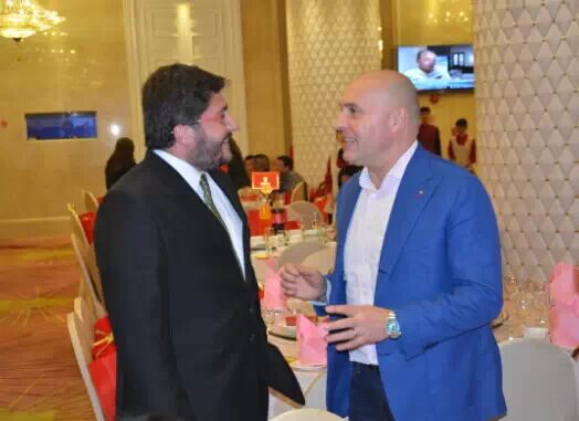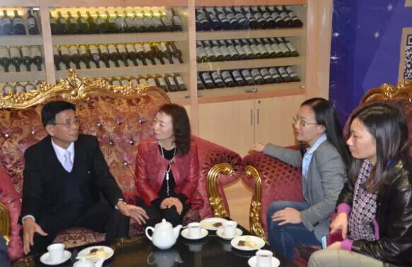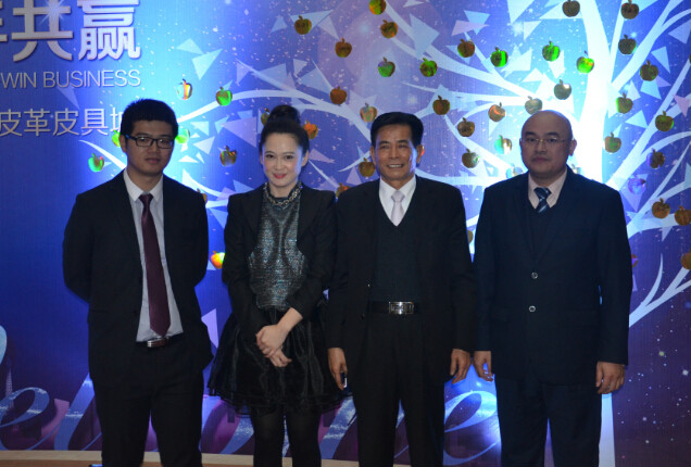 张骏副总裁携圣地?狮岭(国际)皮革皮具城副总经理龙立仁、唐慧、廖月照共同代表圣地集团举杯祝酒,希望2015年能够更好的服务于商家,为皮革皮具行业打造出一个全新的服务平台,助力皮革皮具行业继续践行“引进来 走出去”的国际化互通战略,走出一条以创新驱动发展的“新常态”之路。