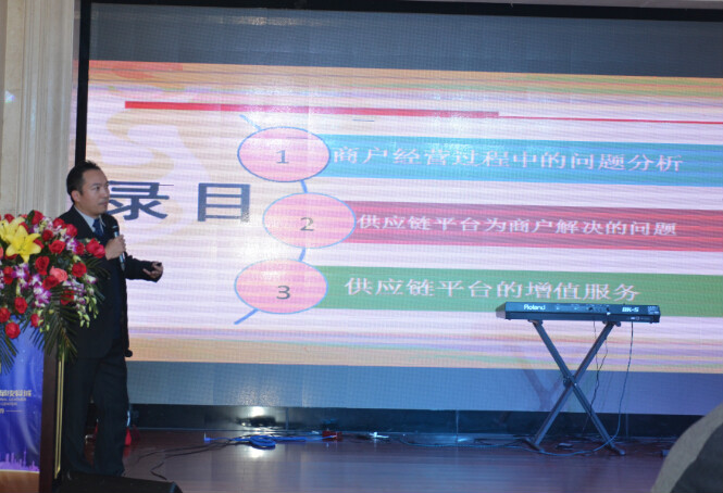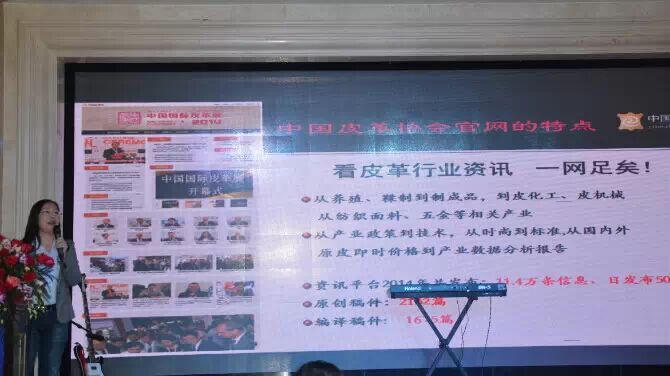 中国皮革网副董事长兼总编辑张燕在分享介绍能整合完整产业链的O2O平台——中国皮革网