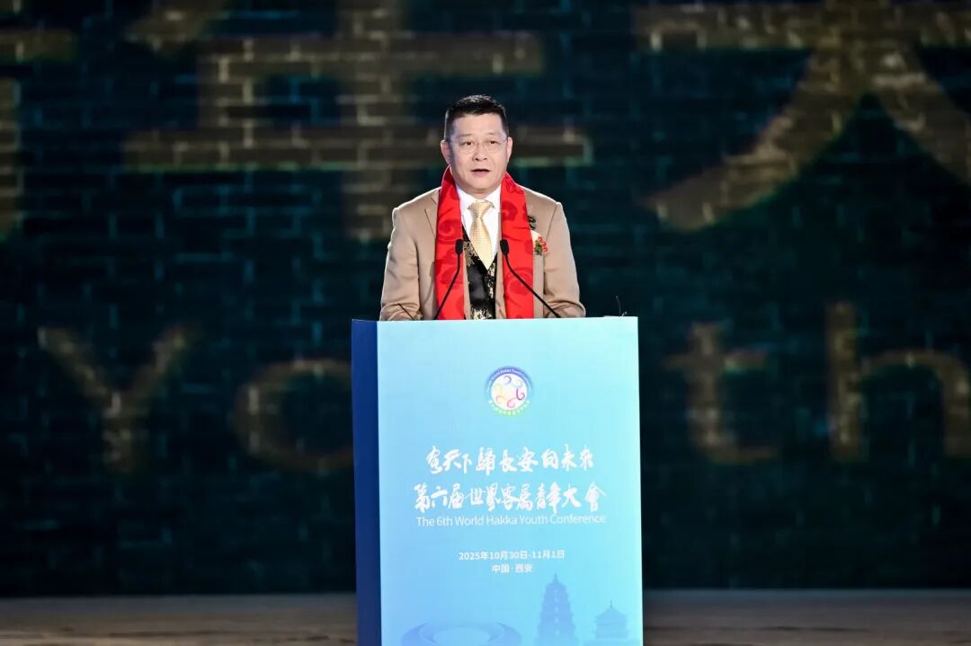 2025年10月30日晚,第六届世界客属青年大会开幕式在西安城墙永宁门盛大举行。来自全球20多个国家800余位全球客属社团代表、青年精英及各界嘉宾齐聚陕西,共襄盛会。广东省客家青年企业家联合会轮值会长、世界客属青年大会理事会第六届主席团主席、圣地集团董事长林俊与各界嘉宾齐聚这座承载着客家先民南迁记忆的千年古都,共赴“客天下,归长安,向未来”的时代之约。